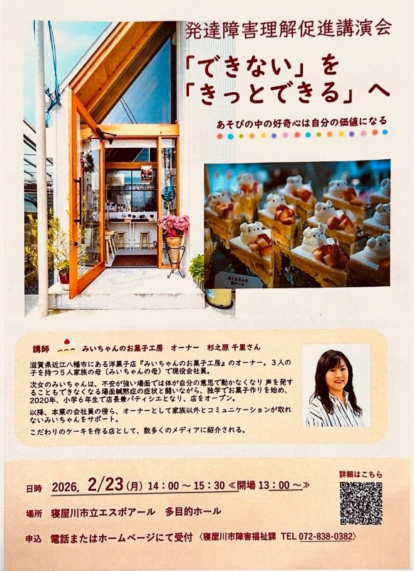 寝屋川市より、2月23日開催の講演会について周知の依頼がありました。